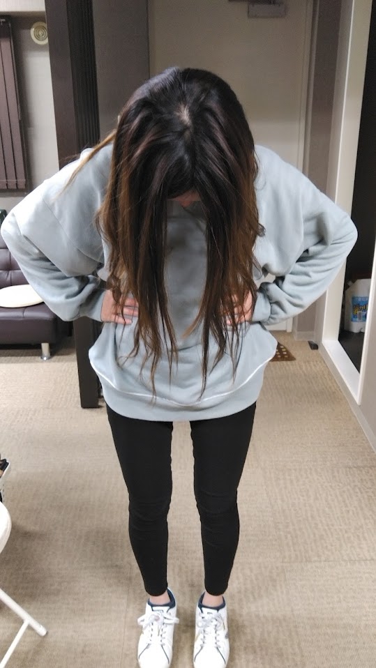 上半身を真っすぐにしたまま首を下に向けます。
