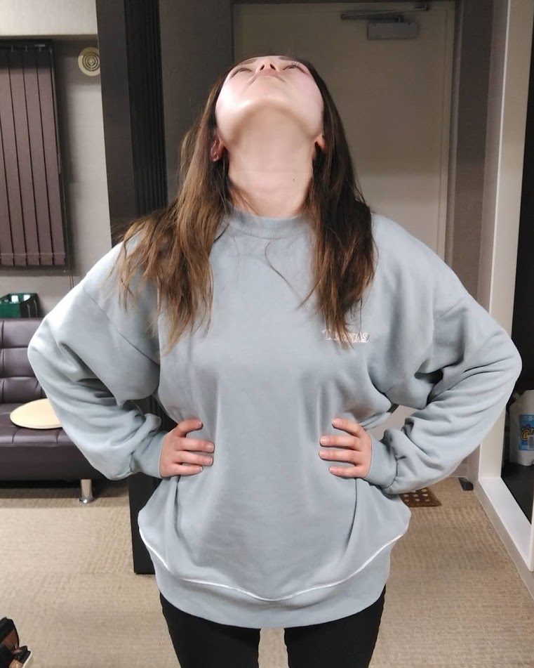 次に上を向きますが、上の方向は首に無理が掛かりやすいので軽く上を向く程度で結構です。